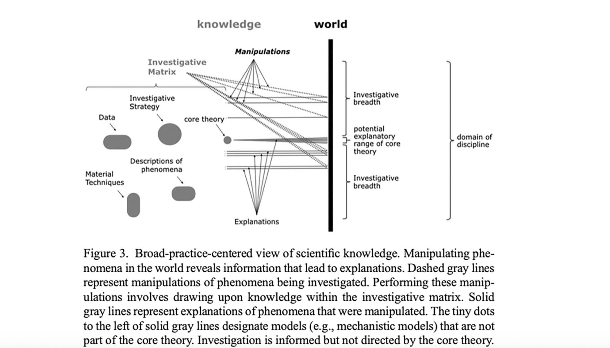 According to Waters (2016), scientific inquiry operates within an investigative matrix that links data, material techniques, models, and explanations through iterative manipulation of phenomena in the world. Core theory informs these investigations, but it does not dictate them; instead, explanations emerge from the interaction between theoretical commitments and practical engagements with phenomena. This view resonates strongly with Fisher’s critique of the tool–science metaphor in GIScience. Just as GIS applications are not mere implementations of pre-existing theory, scientific knowledge more broadly is generated through cycles of experimentation, critique, and refinement rather than linear application of theory to the world. Practices lead to revisions of GISystems and spatial concepts as researchers work to make sense of complicated geographic phenomena.